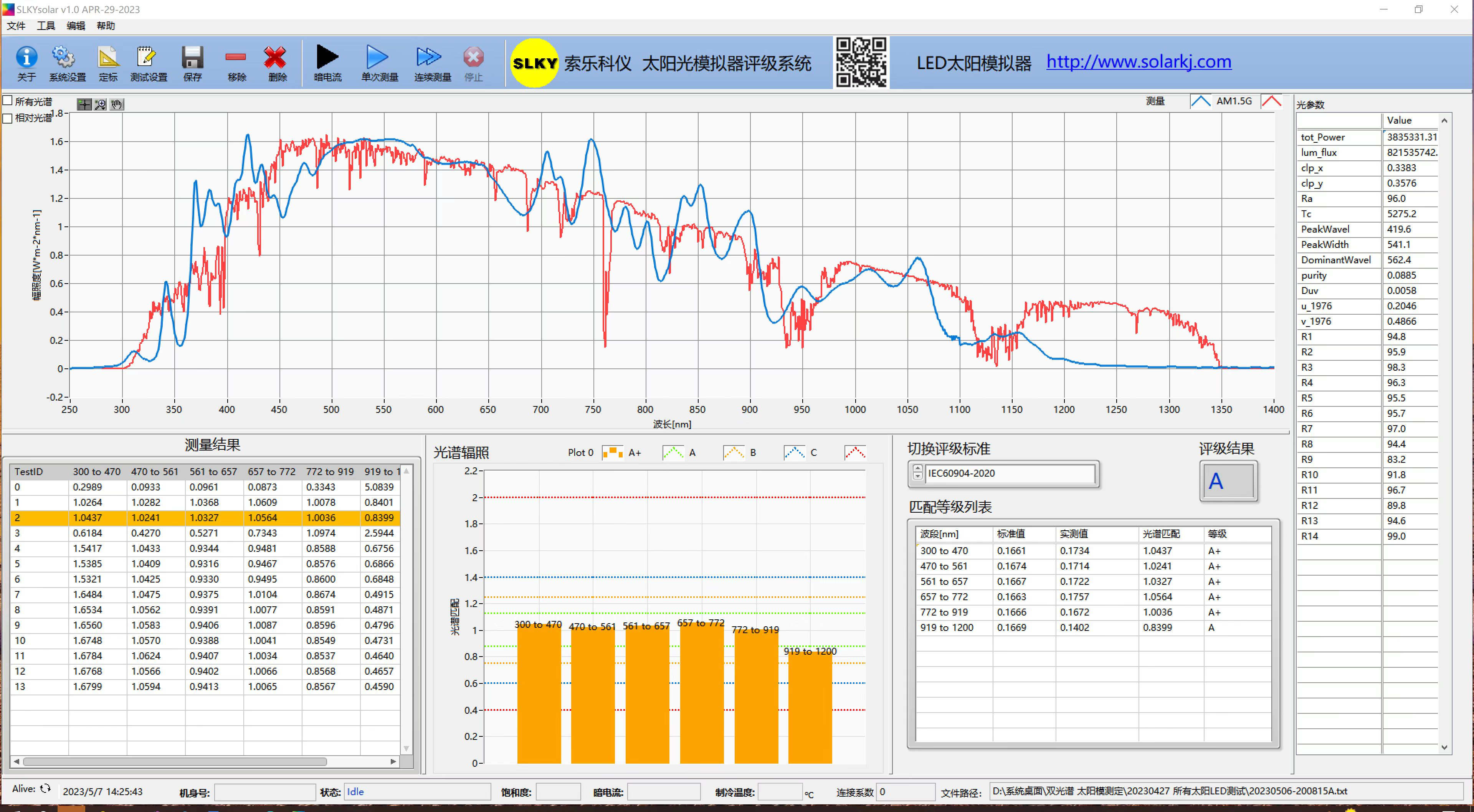 L-400是大面積穩態LED太陽模擬光源系列產品,光譜匹配度優于氙燈光源,光譜滿足AM1.5 IEC 60904-9:2007/2020 Class 3A標準,壽命大于1萬小時(大于10個氙燈壽命,節約10倍成本和時間)。